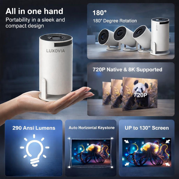 Enjoy crisp visuals, effortless setup, and true portability — all in one sleek design. Experience cinema-quality entertainment, anytime.